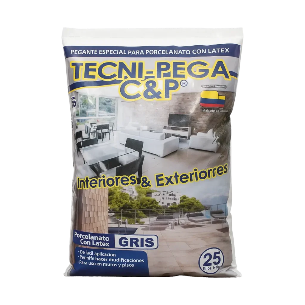 TECNI-PEGA C&P Porcelanato Gris es un adhesivo cementicio de alto rendimiento, diseñado específicamente para la instalación segura y duradera de porcelanato, piezas cerámicas de baja absorción y revestimientos pétreos.
